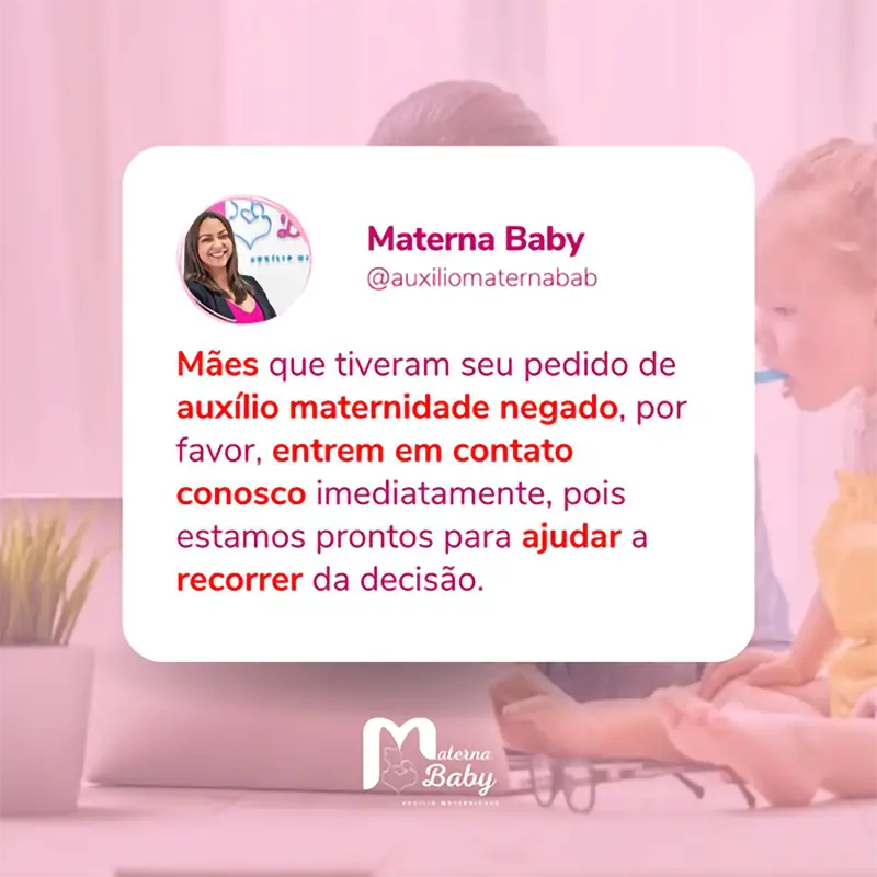 Entre em contato e descubra se você tem direito!Nós Somos a Materna Baby Auxílio Maternidade